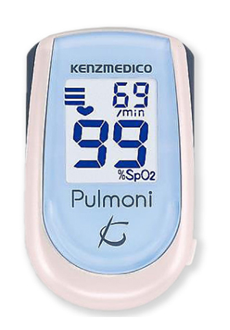 動脈血の酸素飽和度を計測する機器です。指先に装着するだけですので、針を刺すなどの必要はありません。心肺機能の状態を知るために役立ちますし、在宅酸素療法を行っている方への指導にも不可欠な検査です。